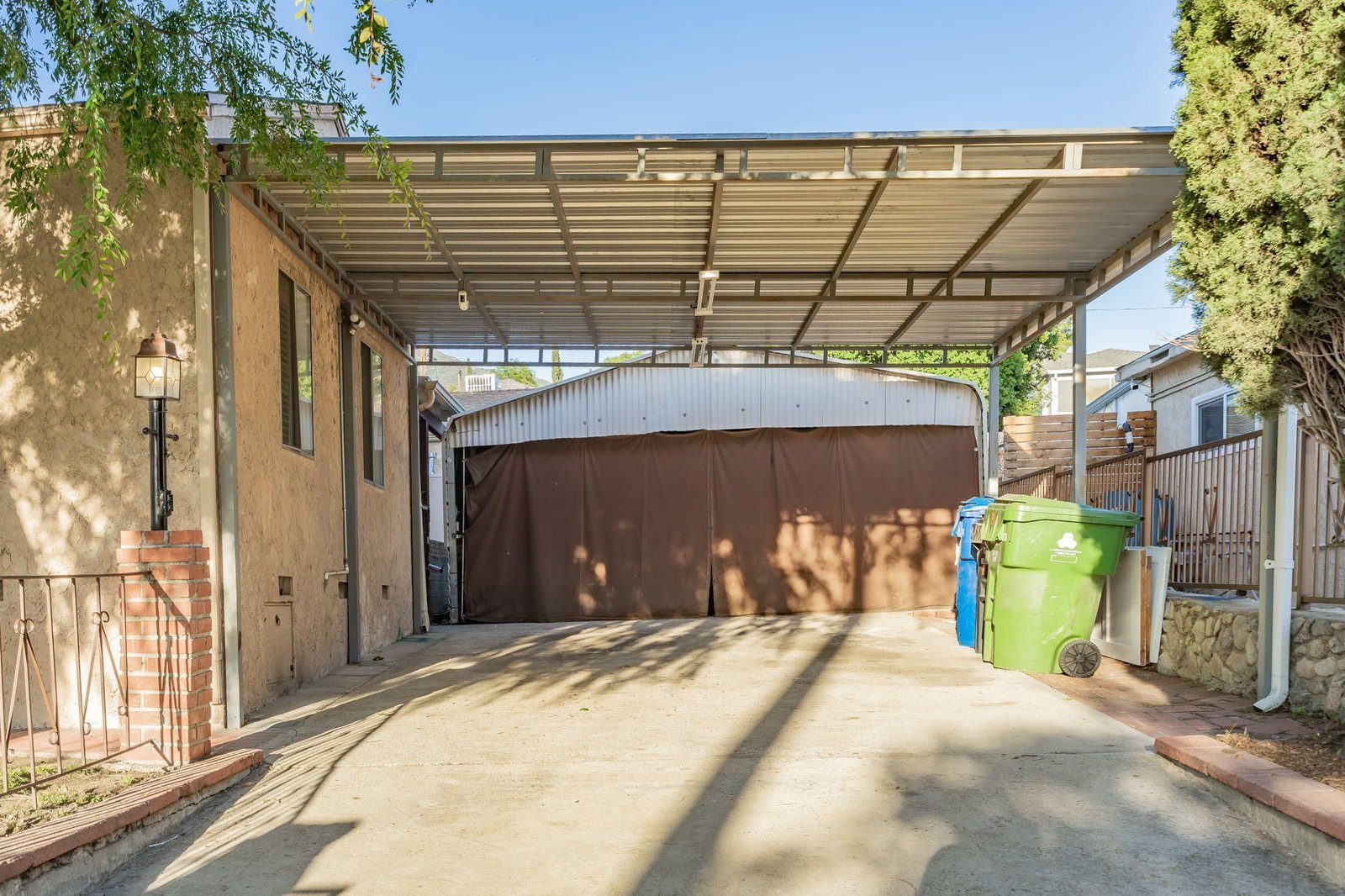This home features plantation shutters thru-out, new carpet and paint, good sized kitchen, dedicated laundry room in the home, automatic driveway gate, tank-less water heater for the main house, separate water heater for the guest unit, newer AC, 2 additional storage bldgs, a full 2 car garage Plus a covered driveway large enough to fit up to 6 additional vehicles or an RV! The unit in the back has so many possibilities- a guest house, studio, office.. You won't want to miss this one. Welcome home!